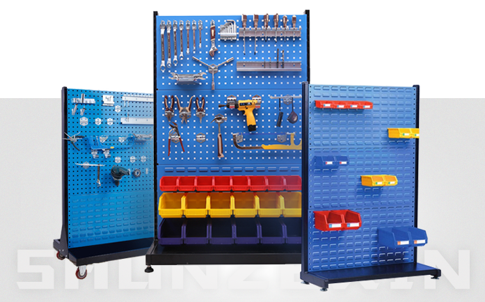 车间中有成千种螺丝螺母还有气钉等,为了能立刻寻找到所需物品,一是要记住这些物品在什么地方,二是要排放整齐,车间买了一批铁皮架,发现不是实用